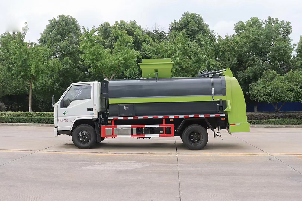 泔水裝載由垃圾桶提升系統完成,該系統具有垃圾桶鎖止結構,裝卸安全可靠。垃圾桶與垃圾投入口銜接好,保證裝卸過程中餐廚垃圾不溢撒、不遺漏。垃圾投入口與推板之間有足夠距離,推板與罐體內表面設有密封裝置,避免餐廚垃圾投入過程及分離過程中溢到推板后方。 液壓系統由泵、液壓閥和順序閥以及各種功能的液壓油缸、高低壓管路組成。關鍵部件可選用原裝進口,保證產品工作可靠、安全。