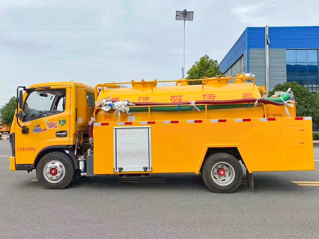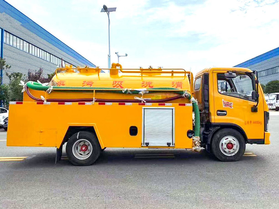 吸污部分:3.8方污罐,罐體5mmQ235優(yōu)質(zhì)碳鋼,配淄博SK-9水循環(huán)泵(北方地區(qū)可選裝威龍真空油泵),8米吸污管一根,進(jìn)氣管加過濾網(wǎng),防溢閥加高,后蓋卡扣鎖緊,前視污亮管,后尾部加裝1個(gè)力拓牌100、150mm的球閥均帶進(jìn)出口。