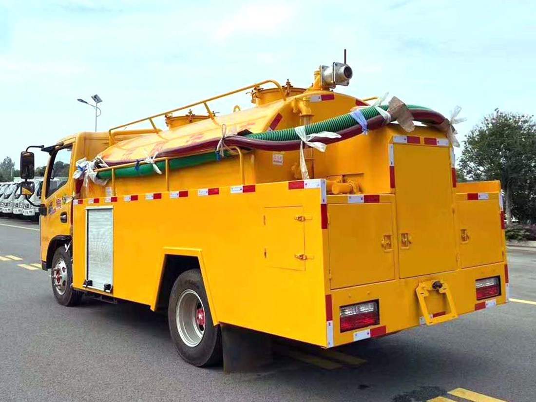 清洗部分:1.8方水箱,采用4mmQ235優(yōu)質(zhì)碳鋼板,水箱兩側(cè)消防接口進(jìn)水,工具箱一個(gè)。采用德國(guó)品浮高壓泵170升流量,24兆帕,配60米內(nèi)徑19#高壓管,10個(gè)大小不同噴頭一套, 后置式清洗卷盤,帶淋管裝置(用于淋洗高壓管疏通管道過后上面殘留的污物),帶氣吹水功能(用于吹出每次高壓管工作完以后內(nèi)部殘留的水漬,防止天冷結(jié)冰影響下次使用)