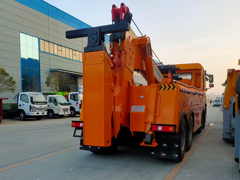 陜汽前四后八一拖一, 排放,黃色標準駕駛室, 400L鋁合金油箱、中控鎖,濰柴400馬力發動機,12檔變速箱 后橋:MAN16T 雙級,軸距:1800+3975+1400,車架:850×300(8+5),輪胎:12.00R20-18PR。 30噸連體式上裝,進口閥,2個15噸液壓絞盤,三節式伸縮型后托臂,二節式六邊形吊臂,分體式工具箱,雙側聯動操作裝置,配后工作燈,肆套鋼叉一套拖叉,一套鋼板吊耳拖叉,一套抱胎裝置,**氣管總成一套,捆綁鏈條!帶無線遙控。